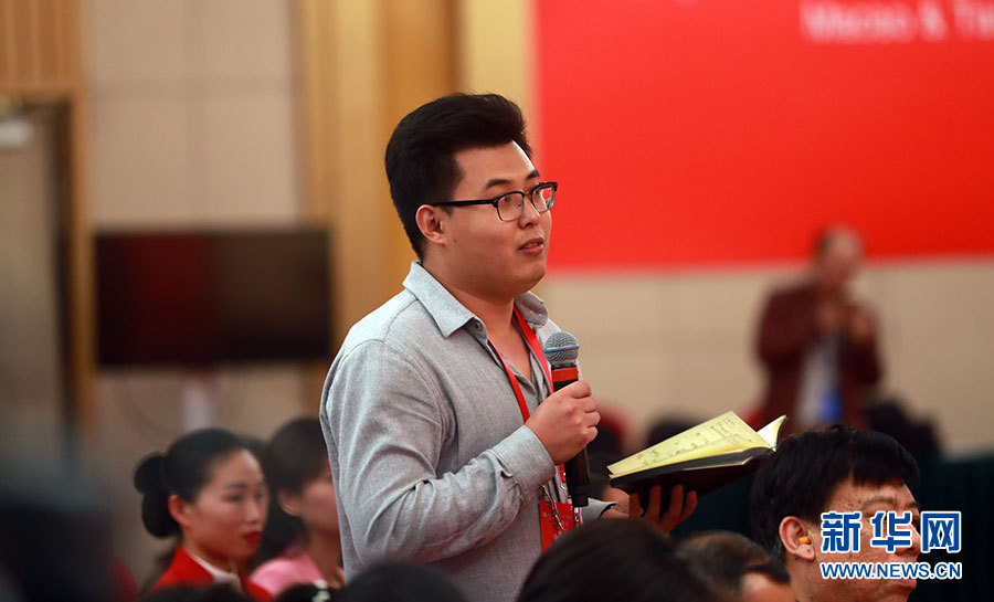 ??? 10月19日,十九大新聞中心舉辦集體采訪,邀請工信和通訊領(lǐng)域代表談走新型工業(yè)化道路。圖為中國質(zhì)量報(bào)記者提問。新華網(wǎng) 郝廣鵬攝