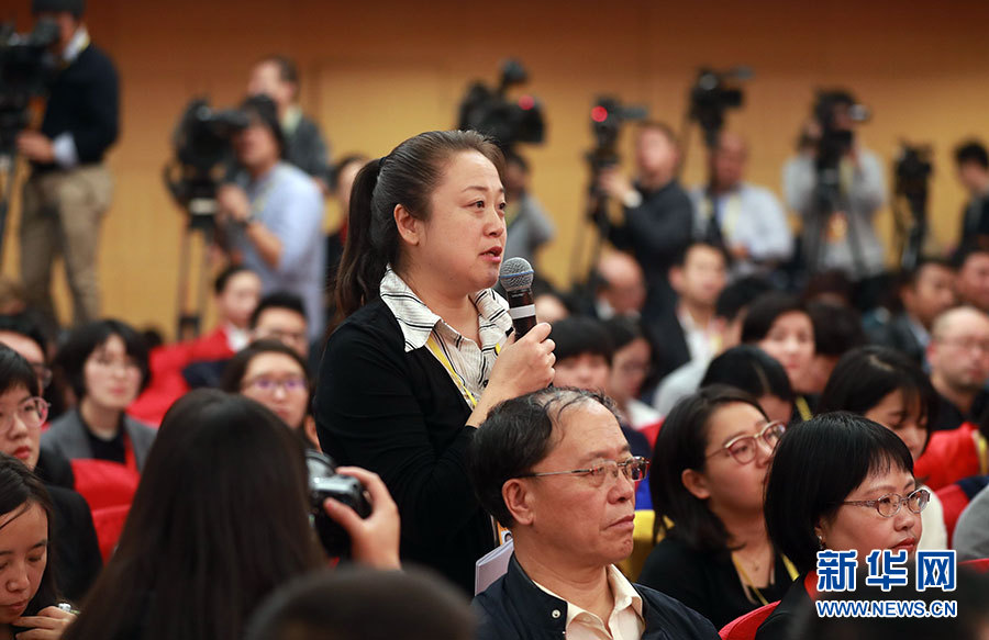 ??? 10月20日,十九大新聞中心舉行記者會(huì),邀請(qǐng)中宣部、中央文明辦、文化部、新聞出版廣電總局相關(guān)負(fù)責(zé)人介紹加強(qiáng)思想道德和文化建設(shè)情況,并回答記者提問。圖為中央人民廣播電臺(tái)記者提問。新華網(wǎng) 郝廣鵬 攝