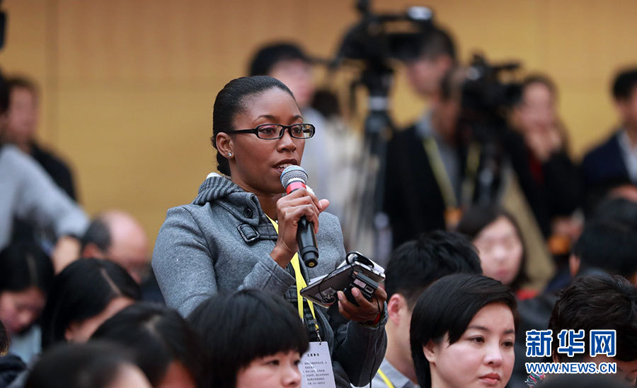 ??? 10月20日,十九大新聞中心舉行記者會,邀請中宣部、中央文明辦、文化部、新聞出版廣電總局相關(guān)負(fù)責(zé)人介紹加強(qiáng)思想道德和文化建設(shè)情況,并回答記者提問。圖為古巴拉美通訊社記者提問記者提問。新華網(wǎng) 郝廣鵬 攝