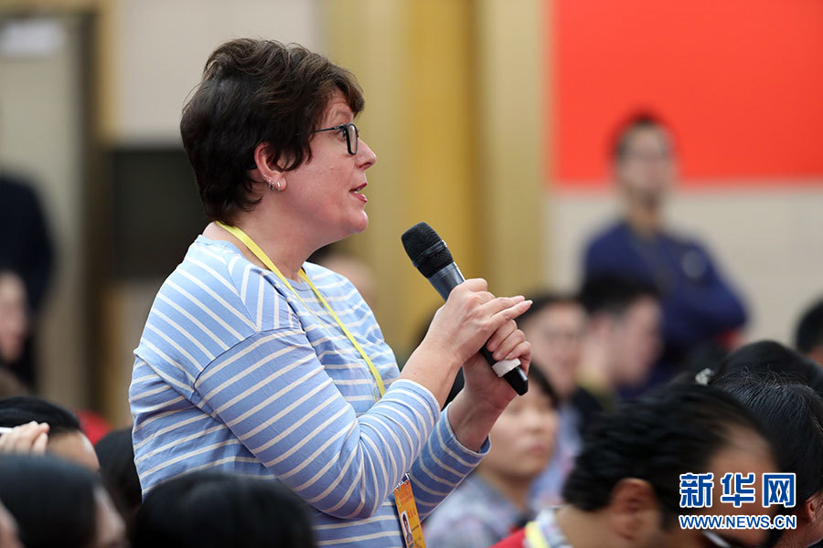 ??? 10月20日,十九大新聞中心舉辦集體采訪活動(dòng),主題為“文化發(fā)展開創(chuàng)新局面”。圖為荷蘭人民報(bào)記者提問。新華網(wǎng) 翟子赫攝