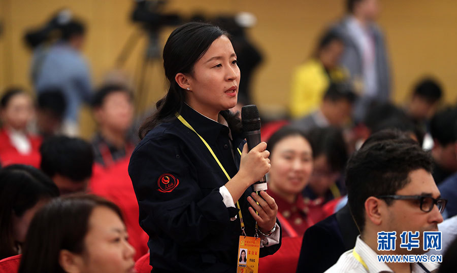 ??? 10月20日,十九大新聞中心舉辦集體采訪活動,主題為“實施創(chuàng)新驅動發(fā)展戰(zhàn)略”。圖為人民網記者提問。新華網 郝廣鵬攝