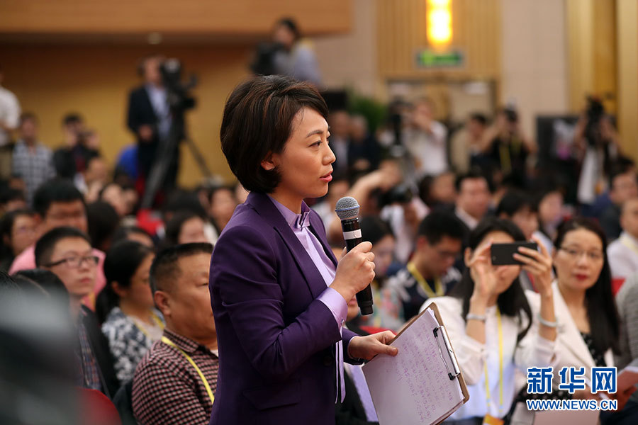 10月21日,十九大新聞中心舉辦記者招待會(huì),邀請(qǐng)國(guó)家發(fā)展改革委黨組書(shū)記、主任何立峰,副主任張勇,副主任寧吉喆介紹以新發(fā)展理念為引領(lǐng),推進(jìn)中國(guó)經(jīng)濟(jì)平穩(wěn)健康可持續(xù)發(fā)展有關(guān)情況,并回答記者提問(wèn)。圖為中央電視臺(tái)、中國(guó)國(guó)際電視臺(tái)記者提問(wèn)。新華網(wǎng) 郝廣鵬攝