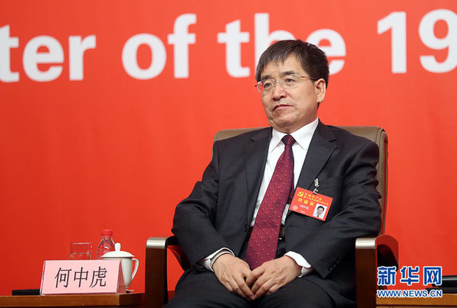 ??? 10月21日,十九大新聞中心舉辦集體采訪活動,主題為“農(nóng)業(yè)科技創(chuàng)新”。圖為中國農(nóng)業(yè)科學(xué)院作物科學(xué)研究所研究員、國家小麥改良中心主任何中虎。新華網(wǎng) 郝廣鵬攝