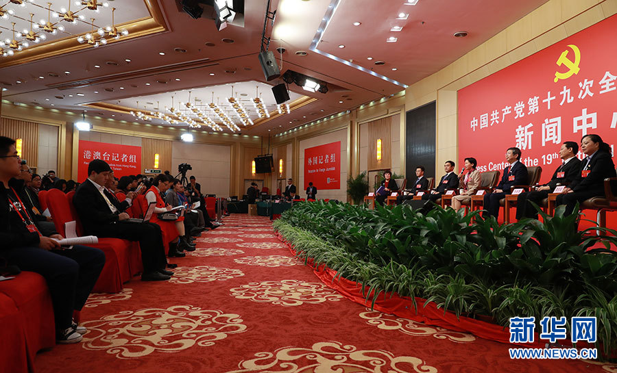 10月22日,十九大新聞中心在梅地亞中心二層新聞發(fā)布廳舉辦集體采訪活動(dòng),邀請(qǐng)教育領(lǐng)域代表談“教育綜合改革”。圖為集體采訪活動(dòng)現(xiàn)場(chǎng)。新華網(wǎng) 郝廣鵬攝