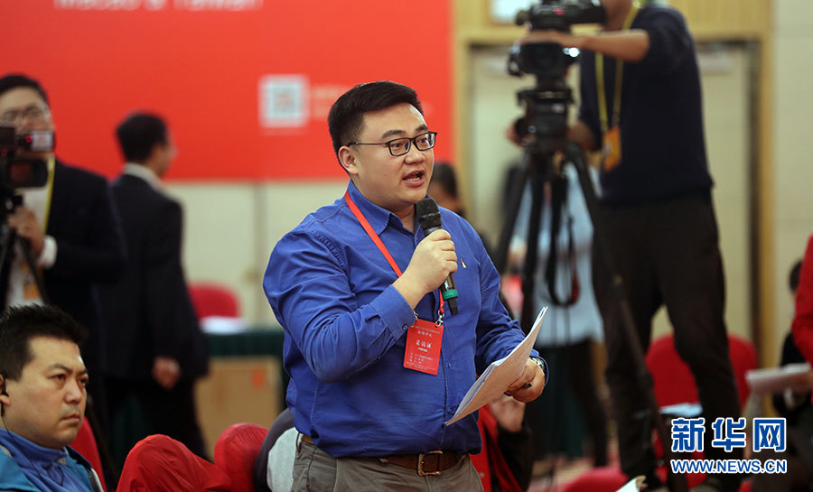 10月22日,十九大新聞中心在梅地亞中心二層新聞發(fā)布廳舉辦集體采訪活動,邀請教育領域代表談“教育綜合改革”。圖為中國教育電視臺記者提問。新華網(wǎng) 郝廣鵬攝