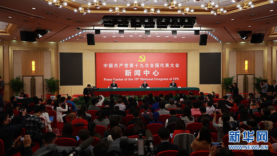 10月23日,十九大新聞中心舉辦記者招待會(huì),邀請中央財(cái)經(jīng)領(lǐng)導(dǎo)小組辦公室副主任楊偉民,環(huán)境保護(hù)部黨組書記、部長李干杰介紹踐行綠色發(fā)展理念,建設(shè)美麗中國有關(guān)情況,并回答記者提問。圖為記者招待會(huì)現(xiàn)場。新華網(wǎng) 郝廣鵬攝