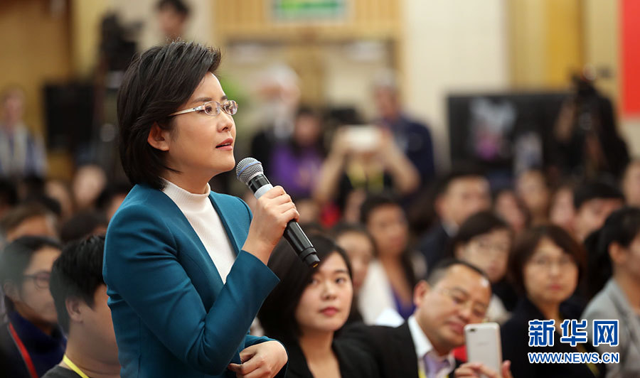10月23日,十九大新聞中心舉辦記者招待會(huì),邀請(qǐng)中央財(cái)經(jīng)領(lǐng)導(dǎo)小組辦公室副主任楊偉民,環(huán)境保護(hù)部黨組書記、部長(zhǎng)李干杰介紹踐行綠色發(fā)展理念,建設(shè)美麗中國(guó)有關(guān)情況,并回答記者提問(wèn)。圖為中央電視臺(tái)記者提問(wèn)。新華網(wǎng) 郝廣鵬攝