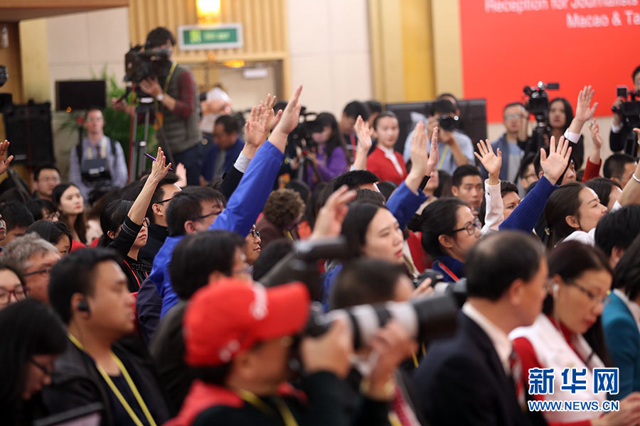 10月23日,十九大新聞中心舉辦記者招待會,邀請中央財經(jīng)領(lǐng)導(dǎo)小組辦公室副主任楊偉民,環(huán)境保護部黨組書記、部長李干杰介紹踐行綠色發(fā)展理念,建設(shè)美麗中國有關(guān)情況,并回答記者提問。圖為現(xiàn)場記者。新華網(wǎng) 郝廣鵬攝