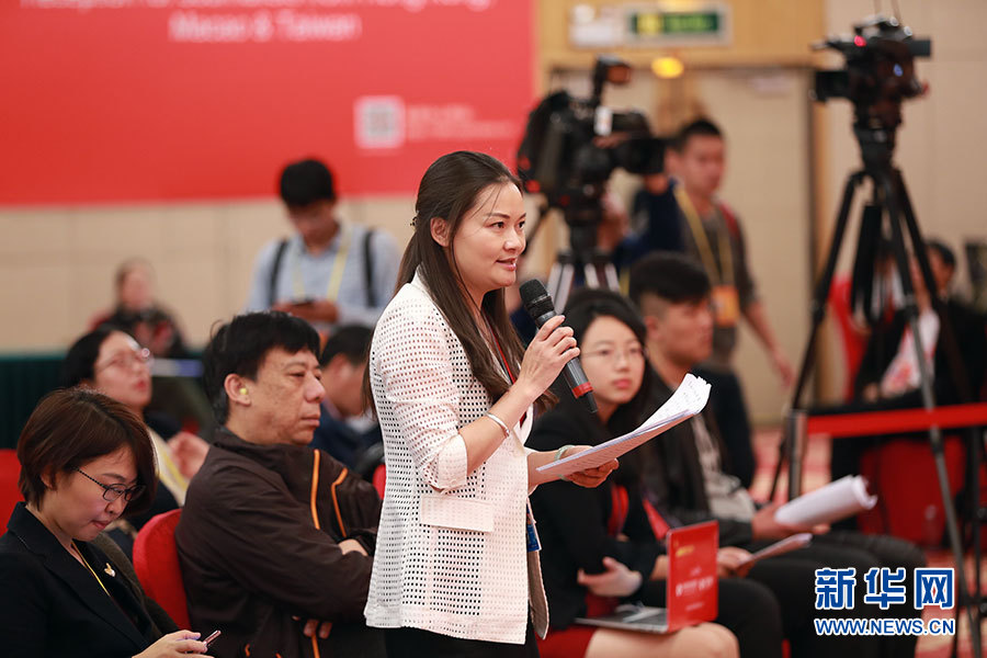 10月23日,十九大新聞中心舉辦集體采訪(fǎng)活動(dòng),主題為“打好生態(tài)環(huán)保攻堅(jiān)戰(zhàn)”。圖為中國(guó)冶金報(bào)記者提問(wèn)。新華網(wǎng) 郝廣鵬攝