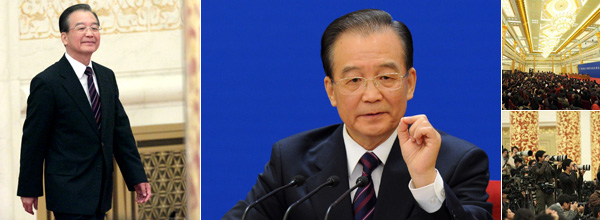 溫家寶與中外記者見(jiàn)面并答問(wèn)。