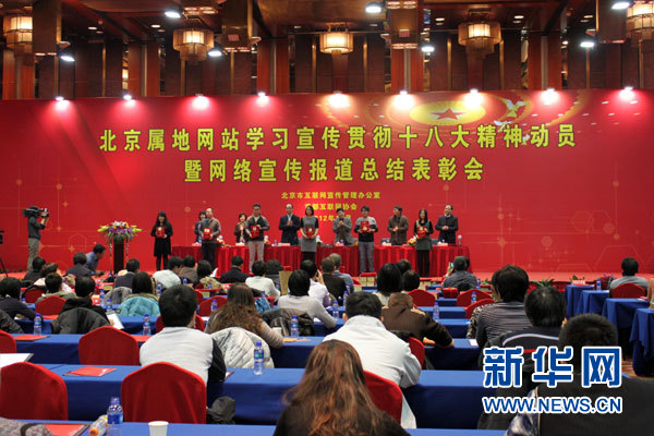 ??? 新華網(wǎng)北京11月28日電(記者 陳元)27日,北京市互聯(lián)網(wǎng)宣傳管理辦公室召開北京屬地網(wǎng)站學(xué)習(xí)宣傳貫徹黨的十八大精神動員大會暨網(wǎng)絡(luò)宣傳報(bào)道總結(jié)表彰會。