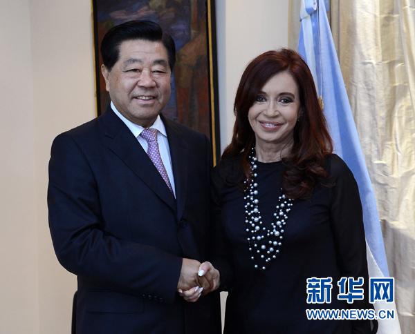 賈慶林會(huì)見阿根廷總統(tǒng)克里斯蒂娜