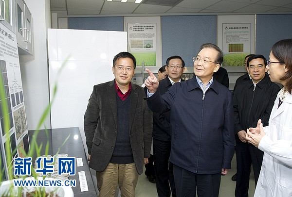 ??? 12月13日,國務(wù)院總理溫家寶到北京中關(guān)村考察并與部分企業(yè)負(fù)責(zé)人座談。這是溫家寶在未名凱拓農(nóng)業(yè)生物技術(shù)有限公司考察。 新華社記者黃敬文 攝