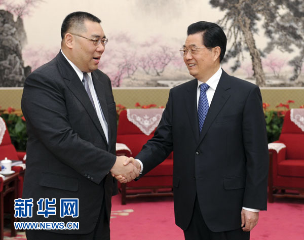 ??? 12月21日,國家主席胡錦濤在北京中南海會(huì)見來京述職的澳門特別行政區(qū)行政長官崔世安。 新華社記者 張鐸 攝