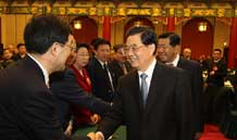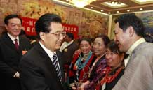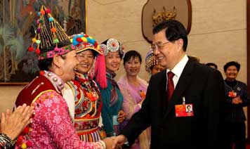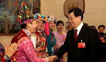 全國(guó)兩會(huì)少數(shù)民族代表委員茶話會(huì)舉行 胡錦濤等出席