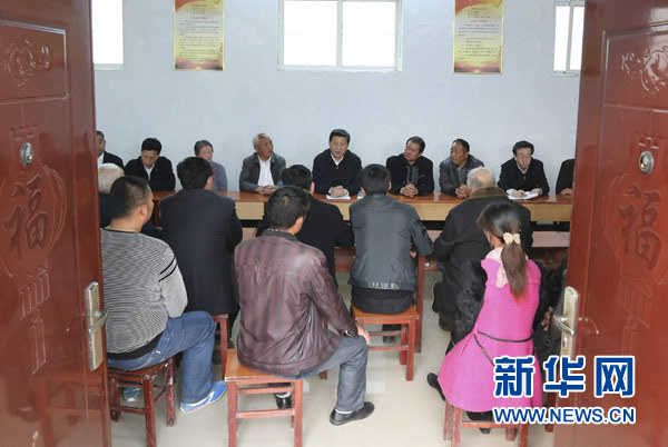 ??? 3月17日,習(xí)近平在東壩頭鄉(xiāng)張莊村村委會(huì)與干部群眾座談,聽(tīng)取意見(jiàn)和建議。新華社記者丁林?jǐn)z
