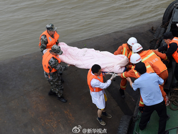 新華網(wǎng)北京6月2日電 據(jù)新華社“新華視點(diǎn)”微博報(bào)道,6月2日,救援人員在沉船現(xiàn)場(chǎng)救起一名幸存者。 (新華社記者肖藝九攝)?