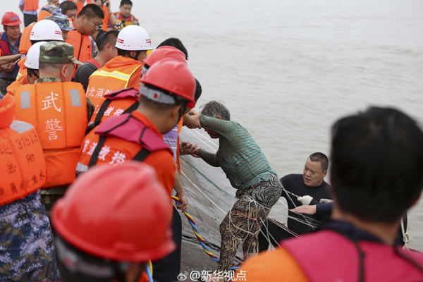 新華網(wǎng)北京6月2日電 ?據(jù)新華社“新華視點”微博報道,“我看著你被救上來的!”2日下午,李克強來到監(jiān)利縣人民醫(yī)院,看望中午獲救的朱紅美。這位65歲的老人被潛水員救起時,總理正在沉船附近水域的船上現(xiàn)場指揮。朱紅美講起自己逃生經(jīng)歷,總理說:“不要多說話,先把身體養(yǎng)好。政府會處理好你們善后事宜的?!?/p>