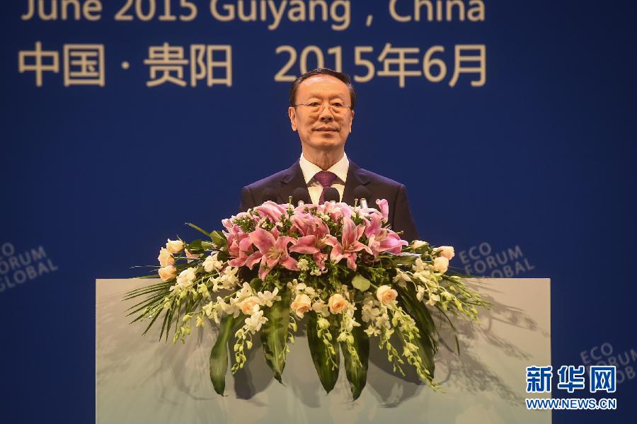 ??? 6月27日,中共中央書記處書記、全國政協(xié)副主席、中國經(jīng)濟社會理事會主席杜青林出席生態(tài)文明貴陽國際論壇2015年年會開幕式并講話。新華社記者 歐東衢 攝