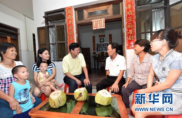 6月26日,樂(lè)東黎族自治縣縣委書記林北川(右四)夜訪九所鎮(zhèn)十所村,聽(tīng)取聯(lián)系點(diǎn)群眾的情況。 新華社記者 趙穎全 攝
