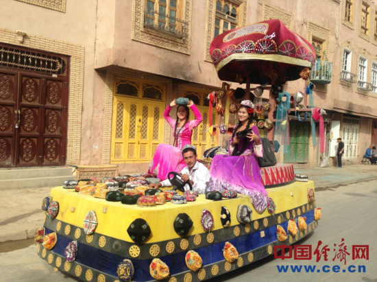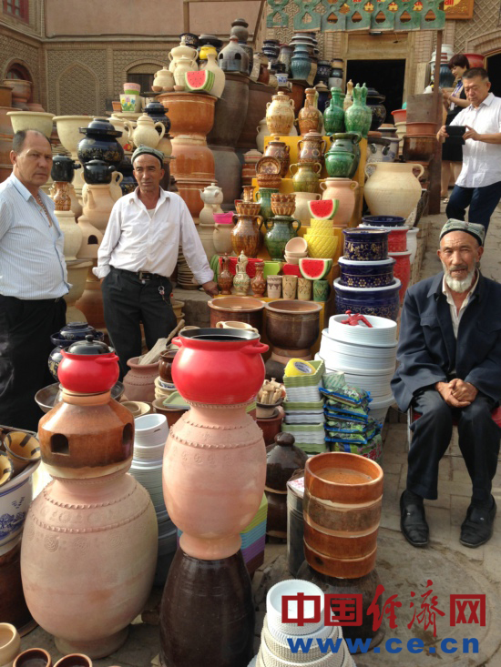 現(xiàn)年50歲的買買提?依明是一個土陶巴扎經(jīng)營者,說起這座老城的變化,他感慨萬千:“你們猜猜這個房子有多少年了”,記者們表示不知道,“300年了,我們家在這5代人哩”,買買提?依明說,原來的房子很小,巷子也很窄,家里開了個旅舍,人多的時候還要打地鋪,生意也不好。后來房屋改造,在自家原址上蓋了新房,全家人高興得不得了,自己花了15萬裝修,整修一新的房屋讓旅舍又紅紅火火的開了起來,大兒子大學(xué)畢業(yè)后已經(jīng)回來幫忙,小兒子還在重慶讀大學(xué)。依明說,當初改造的時候政府讓我們選擇,可以搬出去住樓房,也可以留在這,街坊鄰居們很少有搬走的,現(xiàn)在我周圍還是那些老朋友。說起自己覺得裝修貴不貴,依明說:“政府花了那么多錢給我們蓋房子,我們自己花一點也是應(yīng)該的,感謝政府給我們這么好的生活。”
