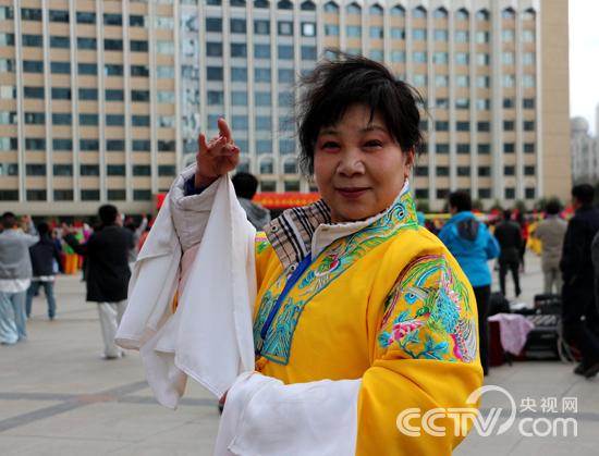在烏魯木齊人民廣場上,孫愛萍和伙伴劉玉閣將現(xiàn)代豫劇《朝陽溝選段》唱的相當響亮。