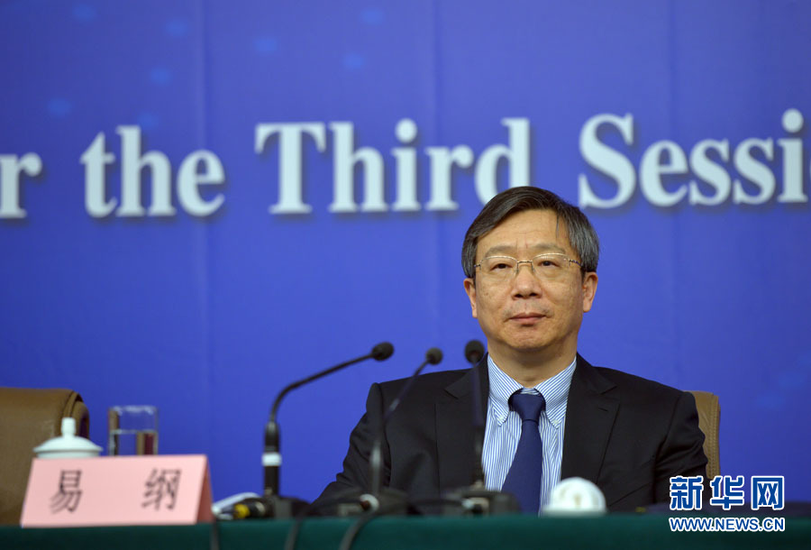 十二屆全國人大三次會(huì)議新聞中心于3月12日在梅地亞中心多功能廳舉行記者會(huì),邀請(qǐng)中國人民銀行行長周小川,中國人民銀行副行長、國家外匯管理局局長易綱,中國人民銀行副行長潘功勝,絲路基金有限責(zé)任公司董事長金琦就金融改革與發(fā)展回答中外記者提問。圖為中國人民銀行副行長、國家外匯管理局局長易綱回答記者提問。新華網(wǎng)/中國政府網(wǎng) 郭小天 攝