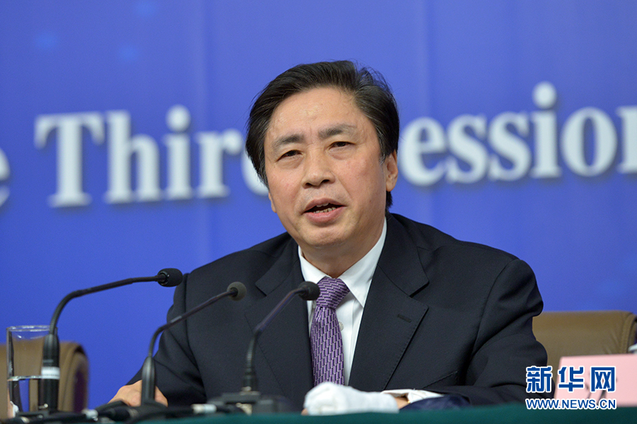 ????3月13日上午10時,十二屆全國人大三次會議新聞中心邀請四川大學校長謝和平、江蘇省教育廳廳長沈健、廣東省教育廳廳長羅偉其、海南大學校長李建保、貴州大學校長鄭強就完善高等教育治理結構的相關問題回答中外記者提問。圖為四川大學校長謝和平答記者問。新華網/中國政府網 郭小天 攝