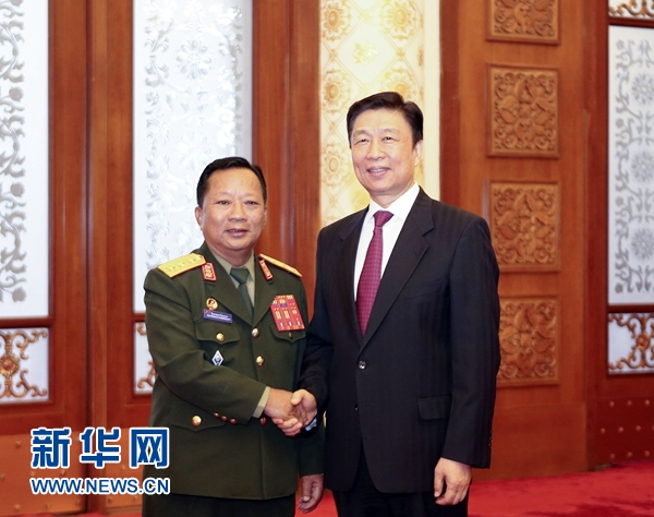 7月19日,中共中央政治局委員、國(guó)家副主席李源潮在北京會(huì)見老撾人民革命黨中央政治局委員、國(guó)防部長(zhǎng)占沙蒙。 新華社記者丁林?jǐn)z