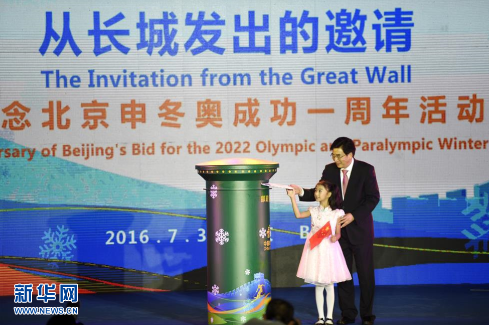 在活動現(xiàn)場,中共中央政治局委員、北京市委書記、北京冬奧組委主席郭金龍和一名少年兒童代表向郵筒投入第一封邀請函,象征著北京冬奧組委從長城發(fā)出邀請,面向全球征集北京2022年冬奧會會徽和冬殘奧會會徽設(shè)計(jì)方案。
