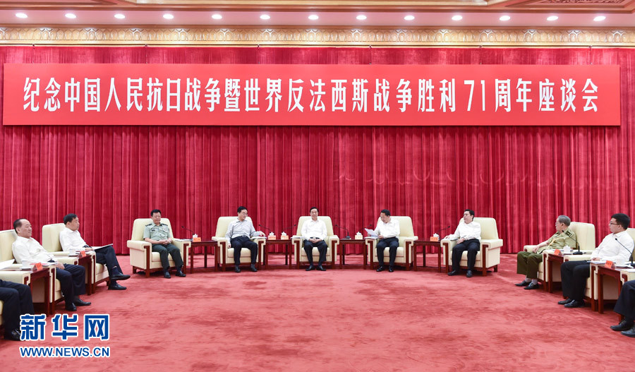?? 9月2日,紀(jì)念中國人民抗日戰(zhàn)爭暨世界反法西斯戰(zhàn)爭勝利71周年座談會(huì)在北京舉行,中共中央政治局委員、中央書記處書記、中宣部部長劉奇葆出席。新華社記者高潔攝