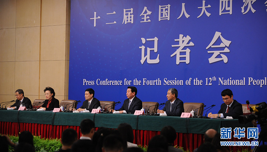 ?????十二屆全國人大四次會(huì)議新聞中心于3月12日(星期六)14時(shí)30分在梅地亞中心多功能廳舉行記者會(huì),邀請(qǐng)國務(wù)院國有資產(chǎn)監(jiān)督管理委員會(huì)主任肖亞慶、副主任張喜武、副主任黃丹華和副秘書長、新聞發(fā)言人彭華崗就“國企改革”的相關(guān)問題回答中外記者的提問。圖為肖亞慶回答記者提問。新華網(wǎng)/中國政府網(wǎng) 陳杰 攝