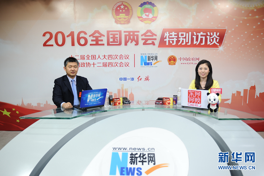 ??? 2016年3月12日,全國政協(xié)委員,內(nèi)蒙古蒙草公司董事長兼總經(jīng)理王召明做客新華網(wǎng)兩會訪談。圖為王召明在訪談現(xiàn)場。新華網(wǎng) 賈海元 攝