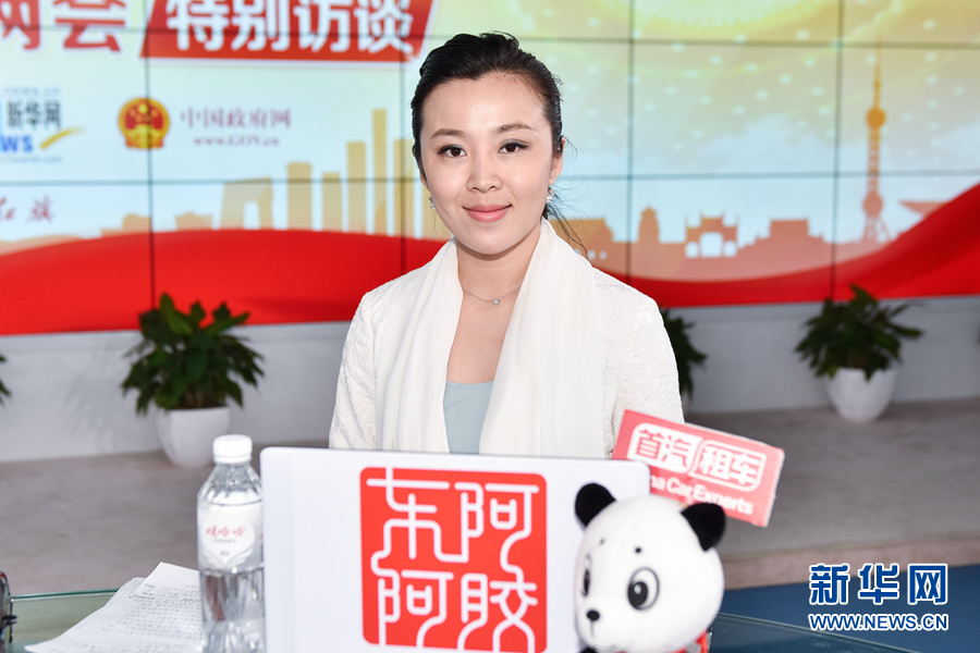 3月12日,全國人大代表,運(yùn)城市市長王清憲做客新華網(wǎng)2016全國兩會特別訪談,與新華網(wǎng)網(wǎng)友在線交流。圖為新華網(wǎng)主持人張姣。新華網(wǎng) 付宇鵬 攝