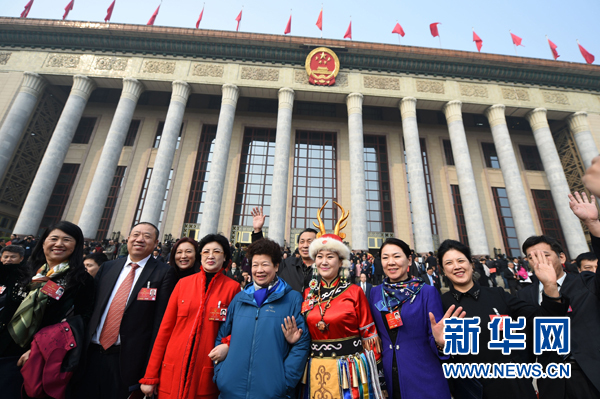 3月16日,第十二屆全國人民代表大會第四次會議閉幕會后,代表走出人民大會堂。?新華社記者 潘昱龍 攝