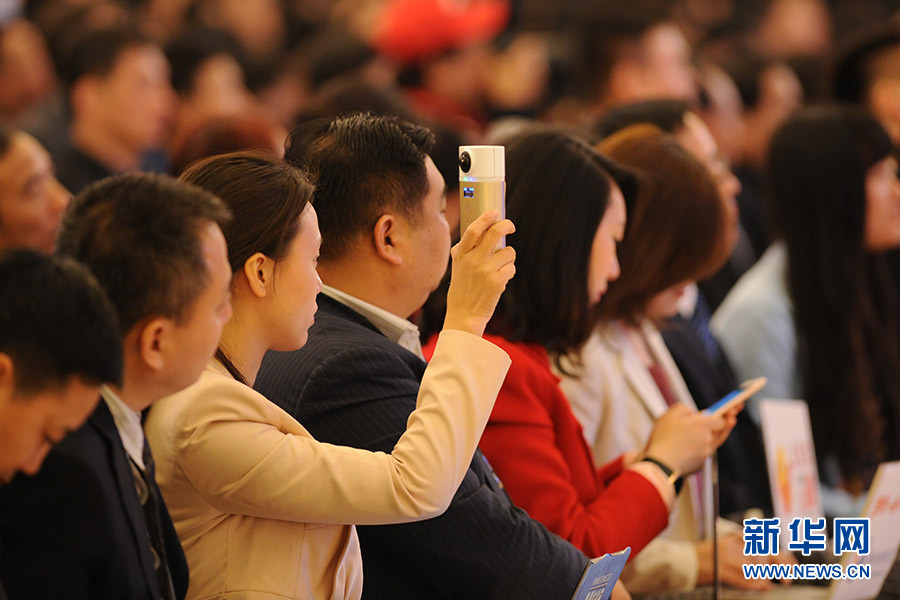 3月16日上午,國務(wù)院總理李克強(qiáng)在人民大會(huì)堂三樓金色大廳會(huì)見采訪十二屆全國人大四次會(huì)議的中外記者并回答記者提出的問題。圖為新華網(wǎng)VR報(bào)道總理記者會(huì)。新華網(wǎng)/中國政府網(wǎng) 陳杰攝