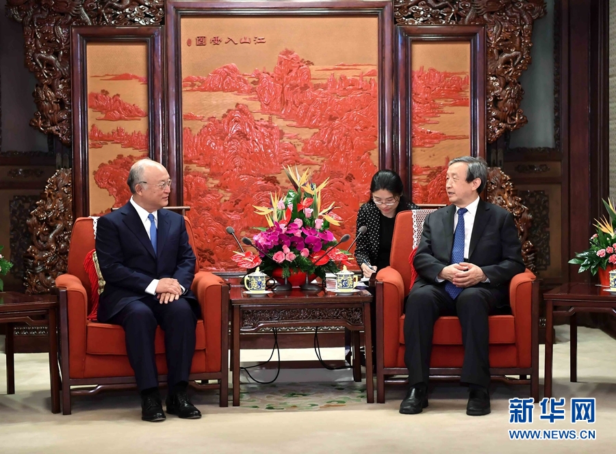 4月6日,國務院副總理馬凱(右)在北京中南海紫光閣會見國際原子能機構(gòu)總干事天野之彌(左)一行。 新華社記者 李濤 攝