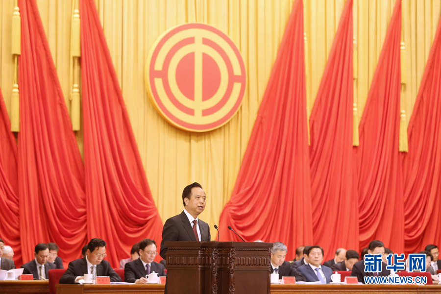 4月27日,慶祝“五一”國際勞動節(jié)暨全國五一勞動獎和全國工人先鋒號表彰大會在北京人民大會堂舉行。中共中央政治局委員、中華全國總工會主席李建國出席大會并講話。新華社記者 才揚 攝