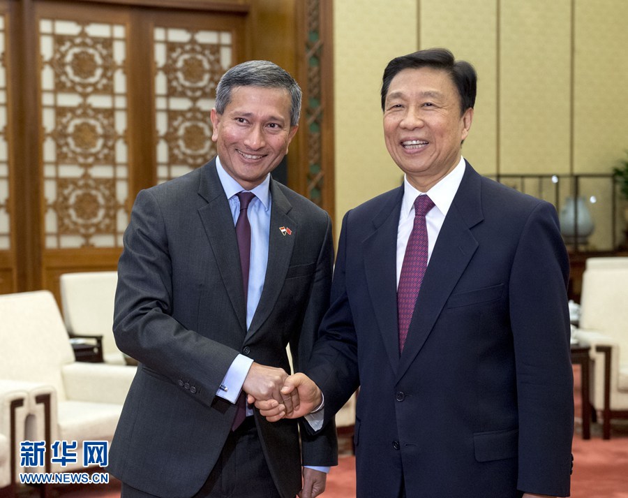 6月12日,國家副主席李源潮在北京會見新加坡外長維文。 新華社記者李學(xué)仁 攝