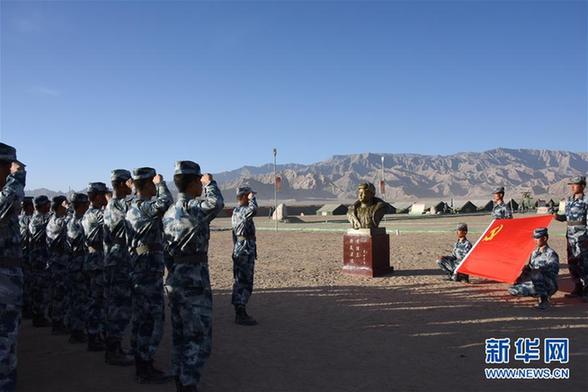 黃繼光生前所在連官兵赴高原參加實(shí)戰(zhàn)化訓(xùn)練,連指導(dǎo)員余海龍帶領(lǐng)官兵莊嚴(yán)宣誓(2016年6月17日攝)。新華社發(fā)(袁文濤 攝)