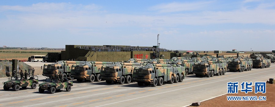 7月30日,慶祝中國(guó)人民解放軍建軍90周年閱兵在位于內(nèi)蒙古的朱日和訓(xùn)練基地舉行。中共中央總書(shū)記、國(guó)家主席、中央軍委主席習(xí)近平檢閱部隊(duì)并發(fā)表重要講話。這是常規(guī)導(dǎo)彈第1方隊(duì)。新華社記者 查春明 攝