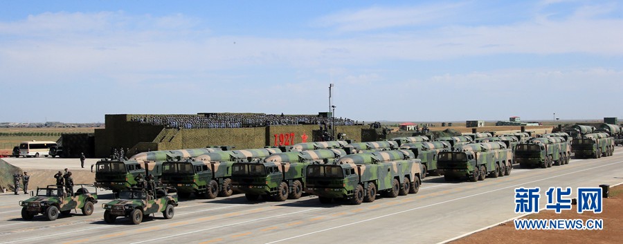 7月30日,慶祝中國(guó)人民解放軍建軍90周年閱兵在位于內(nèi)蒙古的朱日和訓(xùn)練基地舉行。中共中央總書(shū)記、國(guó)家主席、中央軍委主席習(xí)近平檢閱部隊(duì)并發(fā)表重要講話。這是核導(dǎo)彈方隊(duì)。新華社記者 查春明 攝