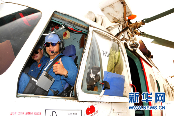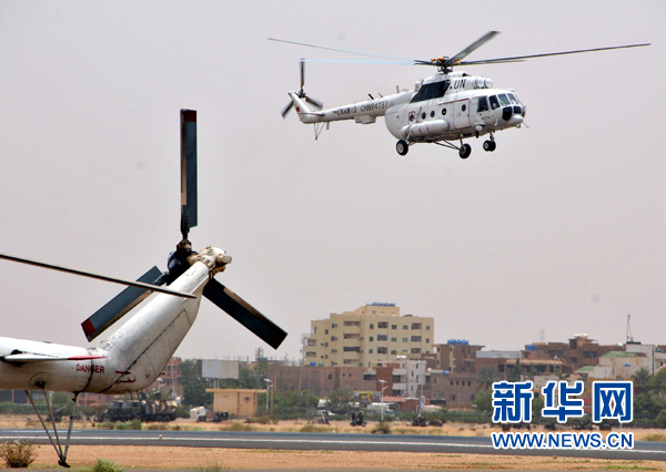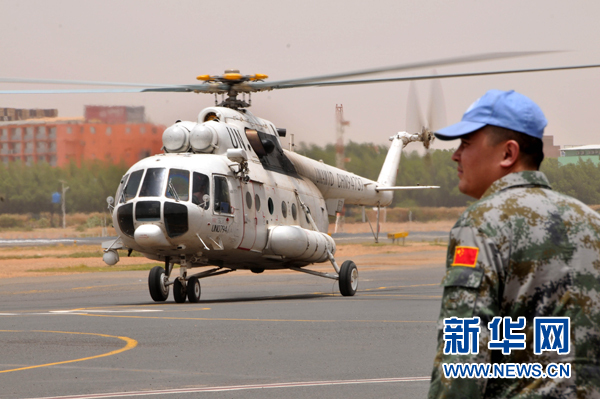 ?。吩拢常比眨袊?guó)首批維和直升機(jī)分隊(duì)在蘇丹喀土穆國(guó)際機(jī)場(chǎng)成功首飛。