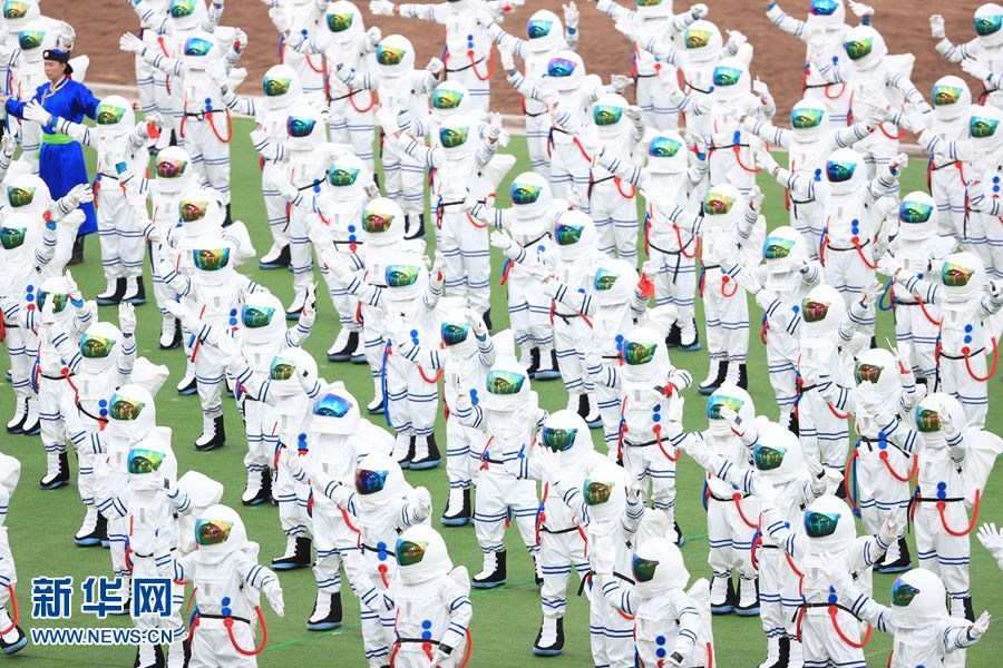 8月8日,內(nèi)蒙古自治區(qū)成立70周年慶祝大會(huì)在呼和塔拉內(nèi)蒙古少數(shù)民族群眾文化體育運(yùn)動(dòng)中心舉行。圖為群眾行進(jìn)表演。新華網(wǎng)記者 陳杰 攝