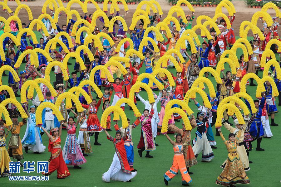 8月8日,內(nèi)蒙古自治區(qū)成立70周年慶祝大會在呼和塔拉內(nèi)蒙古少數(shù)民族群眾文化體育運動中心舉行。圖為群眾行進(jìn)表演。新華網(wǎng)記者 陳杰 攝?
