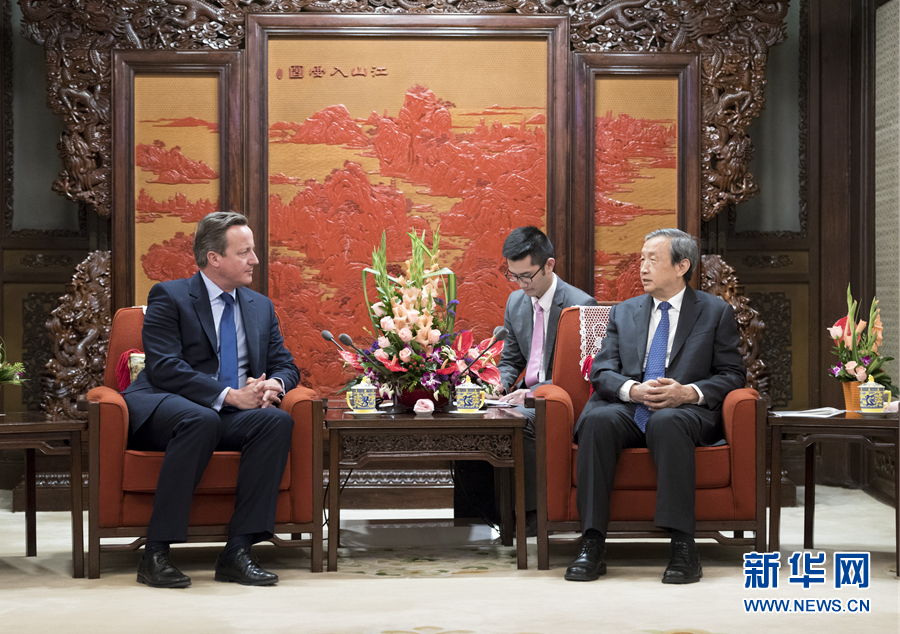 9月20日,國務(wù)院副總理馬凱在北京中南海紫光閣會(huì)見來訪的英國前首相卡梅倫。 新華社記者 丁海濤 攝