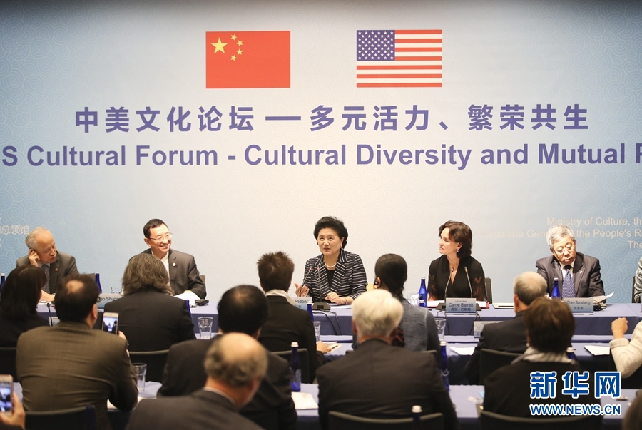 9月26日,在美國紐約大都會藝術(shù)博物館,國務院副總理劉延東(中)出席中美文化論壇。當?shù)貢r間9月26日,國務院副總理劉延東在紐約大都會藝術(shù)博物館出席中美文化論壇并致辭。新華社記者 王迎 攝