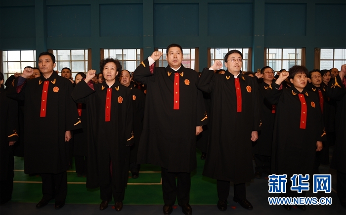 2017年1月10日,內(nèi)蒙古自治區(qū)首批156名入額法官在內(nèi)蒙古高級(jí)人民法院宣誓。司法責(zé)任制改革全面推開,12萬多名法官、9萬多名檢察官遴選入額,優(yōu)質(zhì)司法資源充實(shí)辦案一線。新華社記者 鄧華 攝