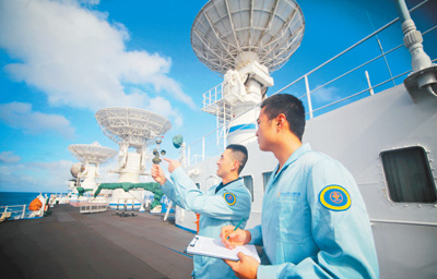2017年,遠(yuǎn)望號(hào)船隊(duì)圓滿完成了包括天舟一號(hào)在內(nèi)的11次海上測(cè)控任務(wù),累計(jì)海上作業(yè)519天,安全航行13.5萬(wàn)余海里,相當(dāng)于繞地球赤道6圈多。在萬(wàn)里大洋之上,遠(yuǎn)望號(hào)船隊(duì)用無(wú)線電波搭接一條條“天梯”為飛船、衛(wèi)星成功飛天保駕護(hù)航。