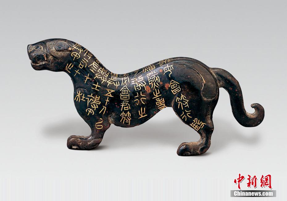 12月29日,全國30家文博機(jī)構(gòu)聯(lián)合打造的“東方既白——春秋文物大聯(lián)展”在湖南省博物館對公眾開放,包括在央視《國家寶藏》中亮相的杜虎兵符,吳王夫差銅矛等在內(nèi)的240件/套文物珍品,帶領(lǐng)觀眾重回“春秋戰(zhàn)國”。圖為杜虎兵符(左符)。 湖南省博物館供圖